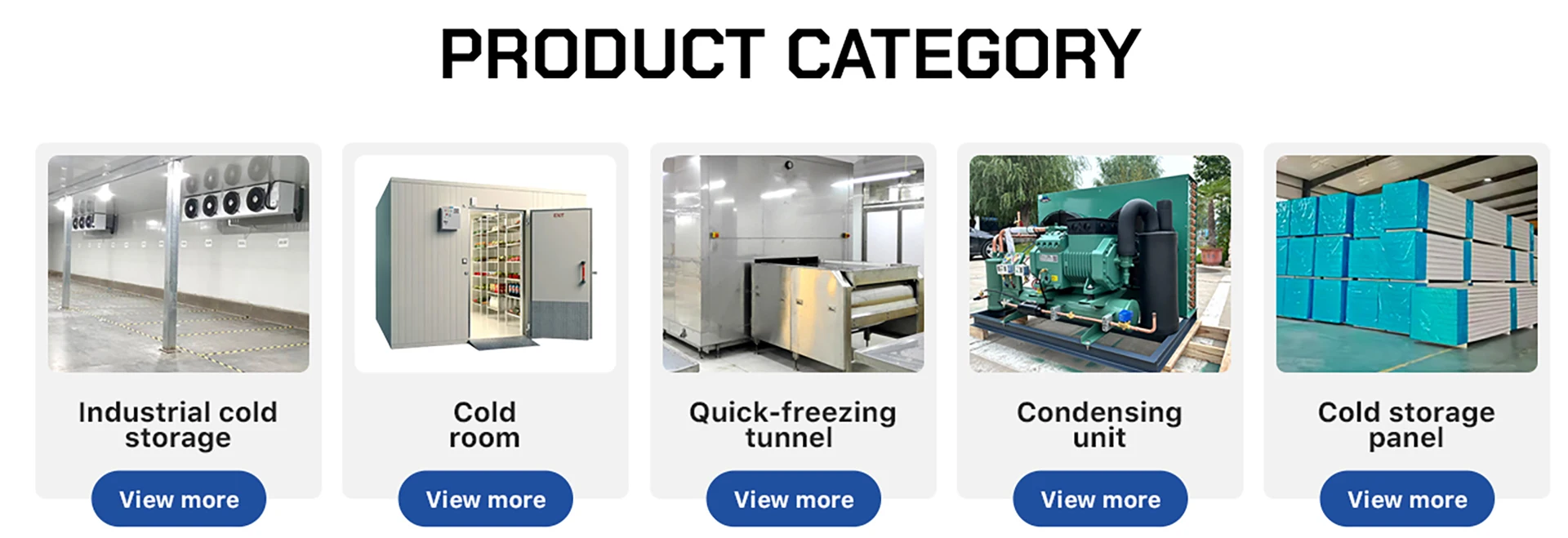 Productos principales:Unidad de refrigeración, Enfriador de aire, túnel de congelación rápida, almacenamiento de cámara frigorífica, componentes de válvula de refrigeración
